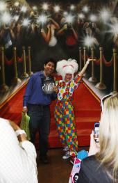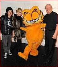 | Julia Gayle playing the character of "Garfield" for it's creator Jim Davis (Above right) at a major event in Santa Monica, CA. These shots were taken during the pess call with celebrities Ashlee Simpson and Pete Wentz. |